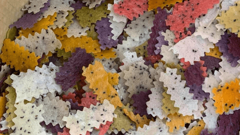 Bánh khẩu xén, loại bánh truyền thống của người Thái, được làm từ gạo nếp và sắn tươi. Bánh mỏng, giòn, có vị ngọt dịu, thơm ngon.