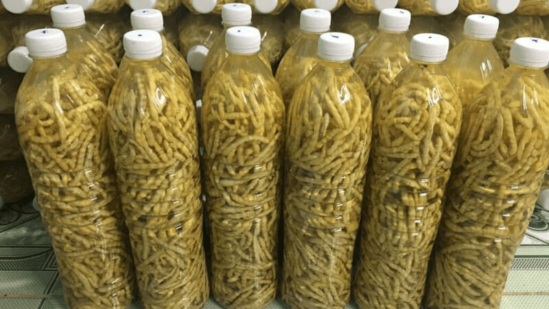 Sâu chít, loại côn trùng sống trong thân cây chít, là một đặc sản quý giá, giàu dinh dưỡng. Sâu chít thường được ngâm rượu hoặc phơi khô để bảo quản và sử dụng lâu dài.